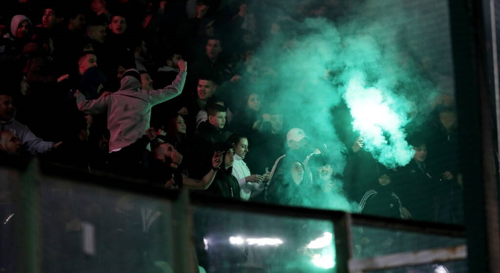 Το ντέρμπι ξεκίνησε με ένταση και για τις δύο ομάδες. Στο 5’ κεφαλιά του Βράνιες έφυγε πάνω από το οριζόντιο δοκάρι.